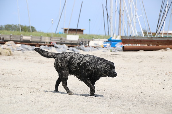 So sieht es dann übrigens aus, wenn Jule sich im Sand trocken gerubbelt hat.