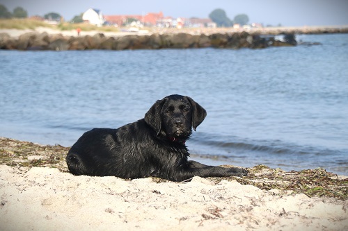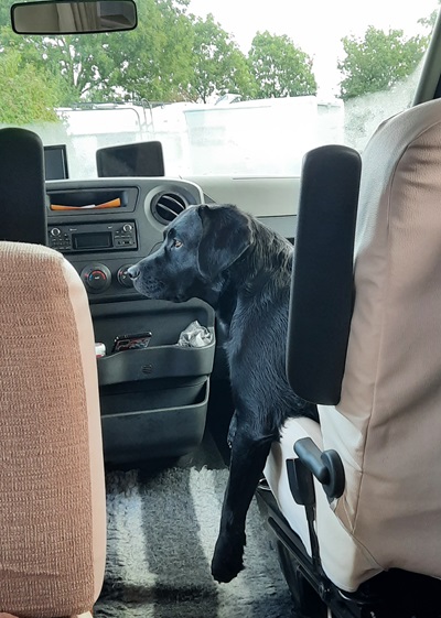 Co-Pilotin Bambi hält die Stellung im Wohnmobil.