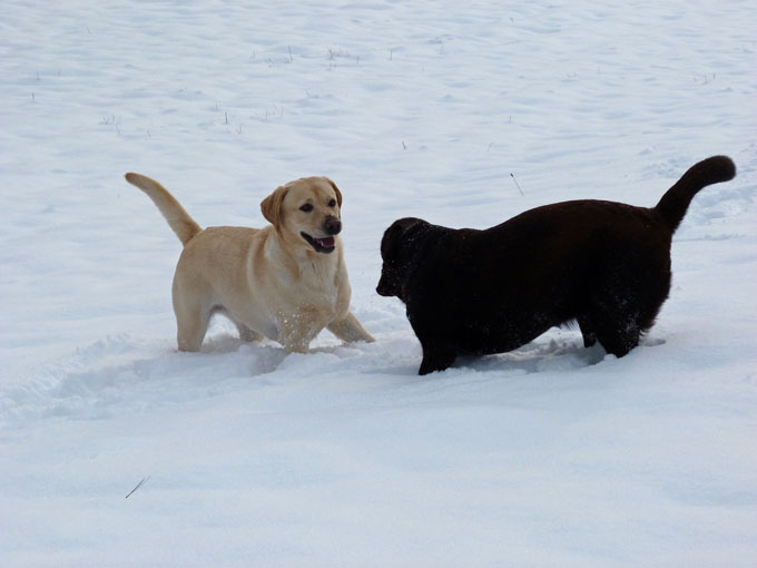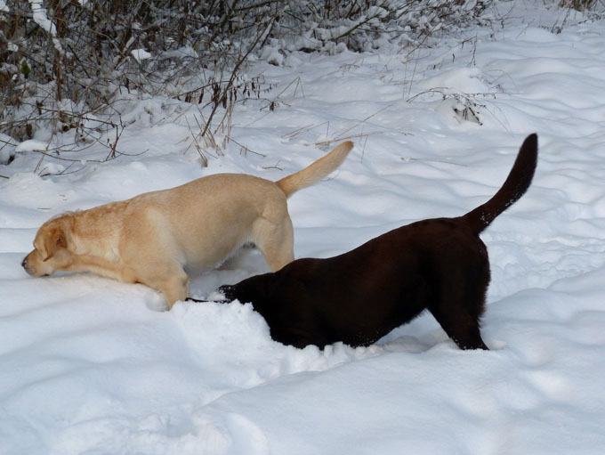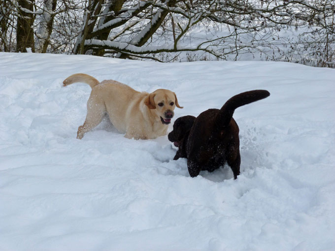 Ein Highlight im Winter ist der Schnee für alle Labbis! Unsere Bande genießt den Schnee in vollen Zügen. Spielen, wälzen und Spuren verfolgen. Ein paar Eindrücke haben wir mal festgehalten.