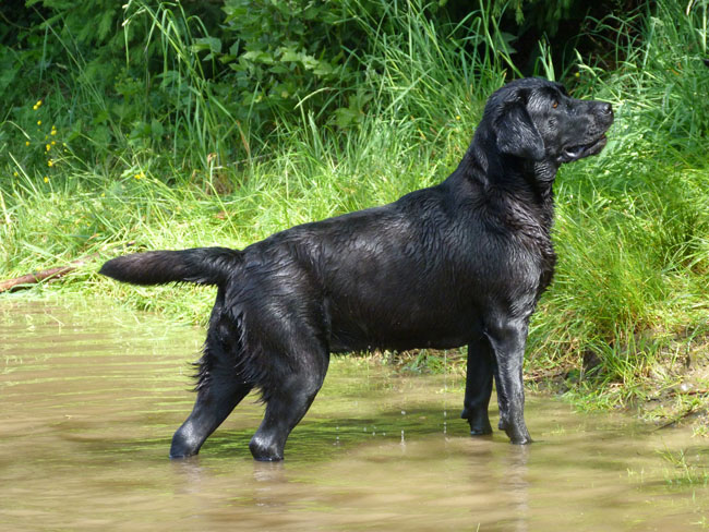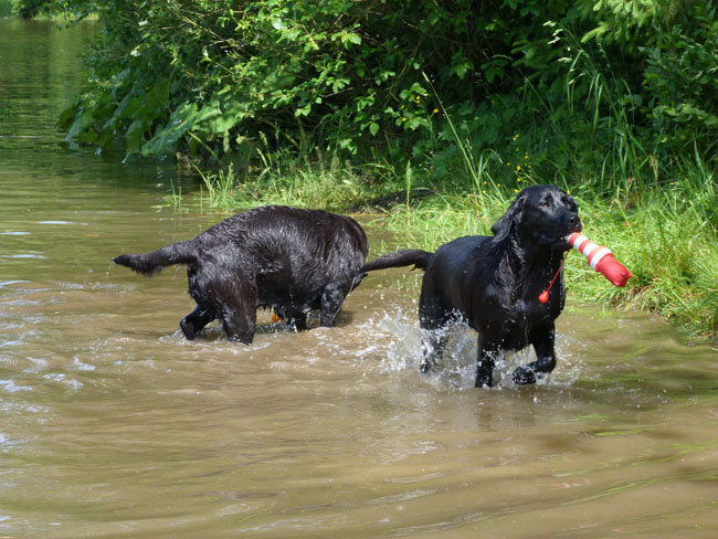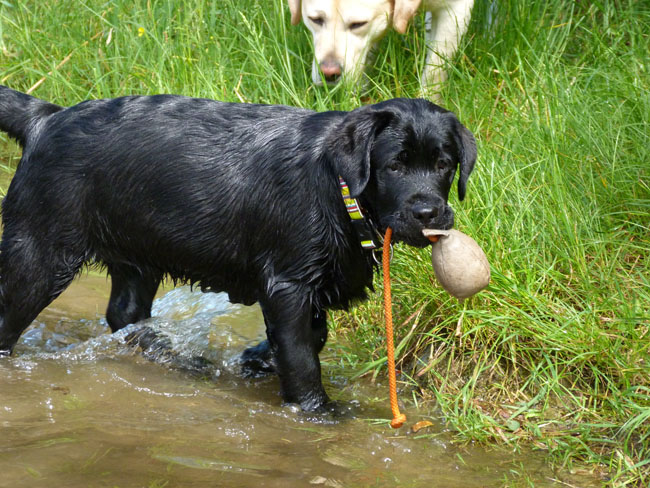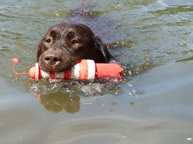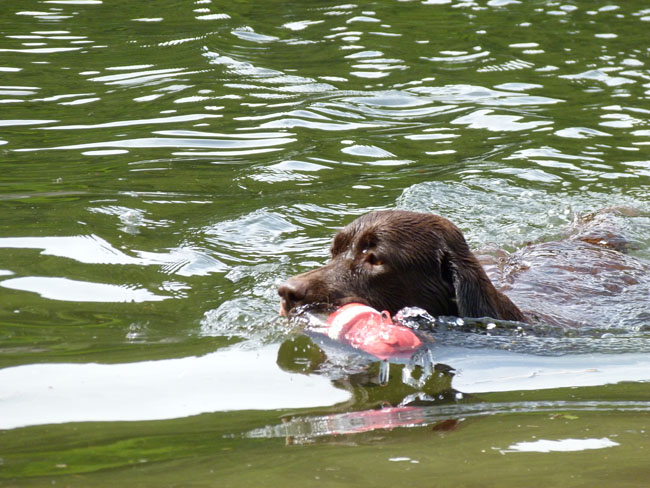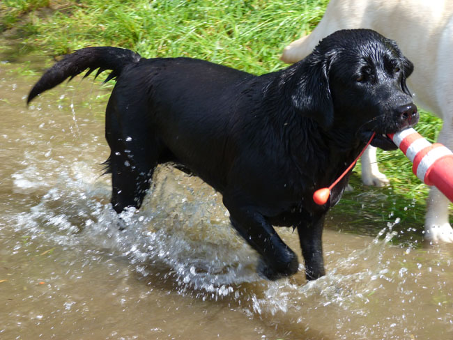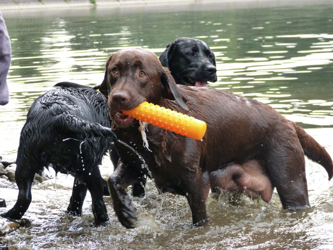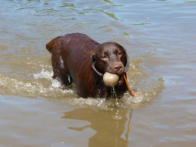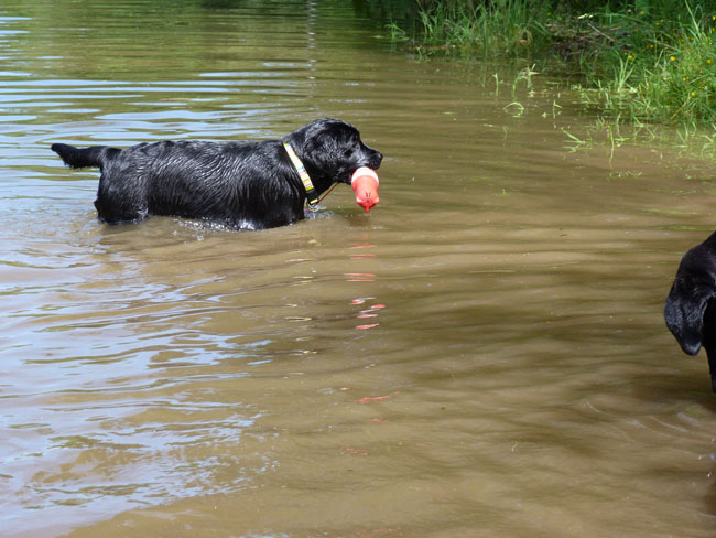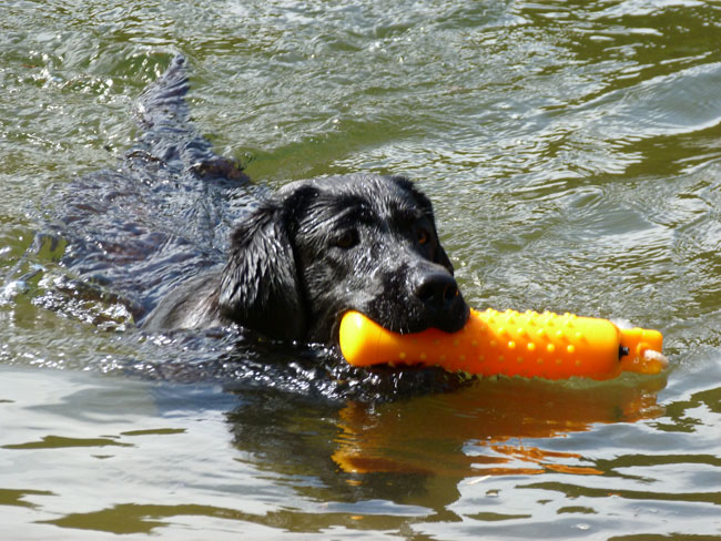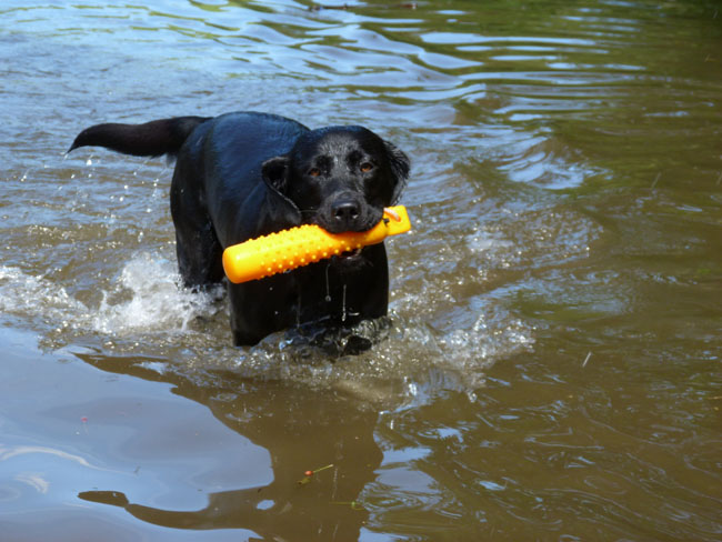 Wasser und apportieren ist Jettes große Leidenschaft