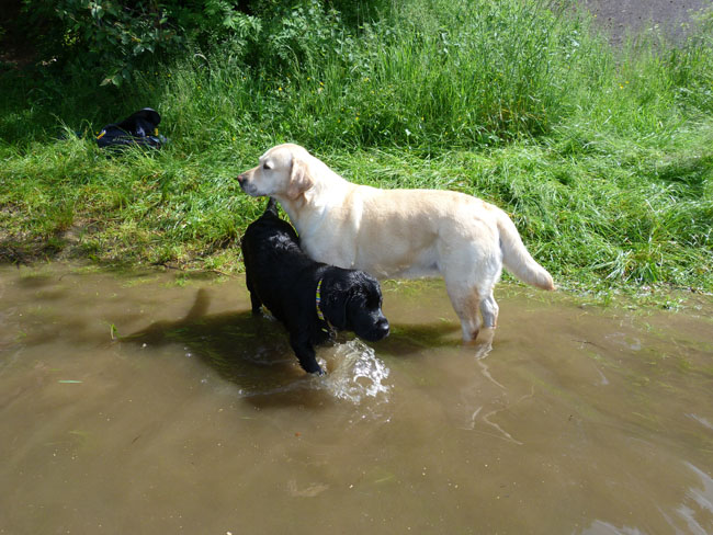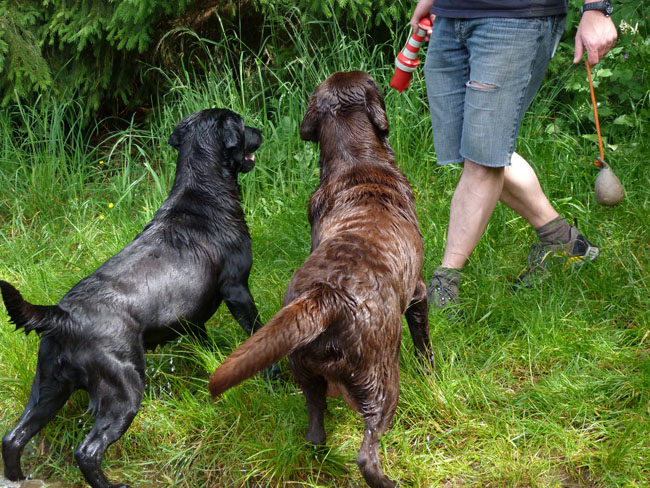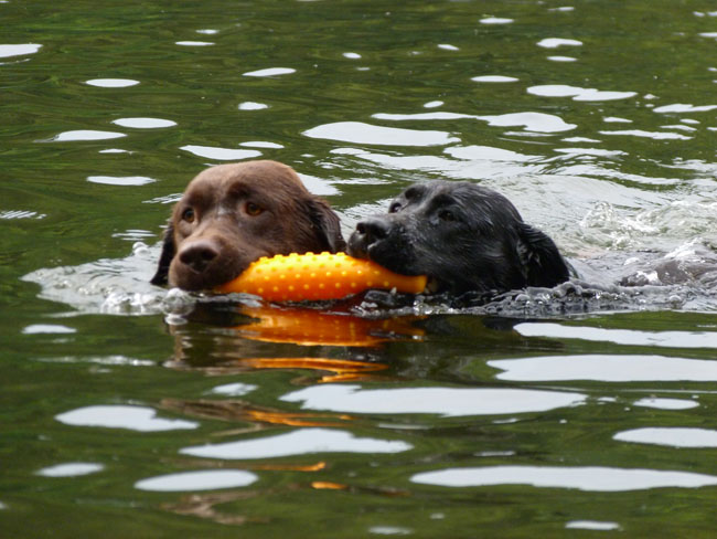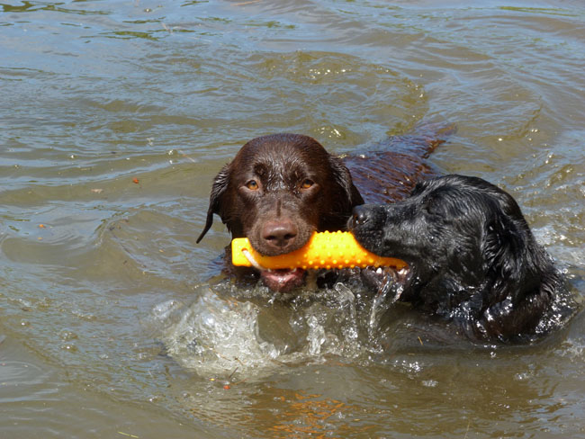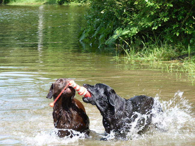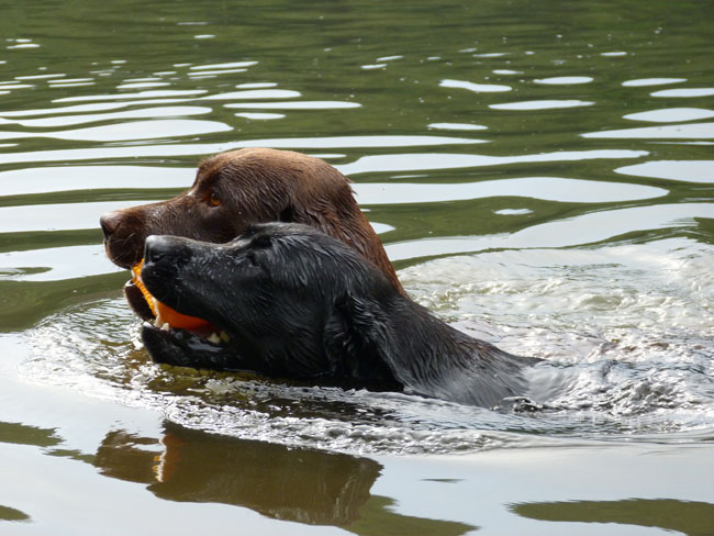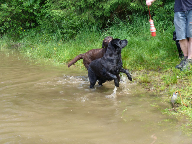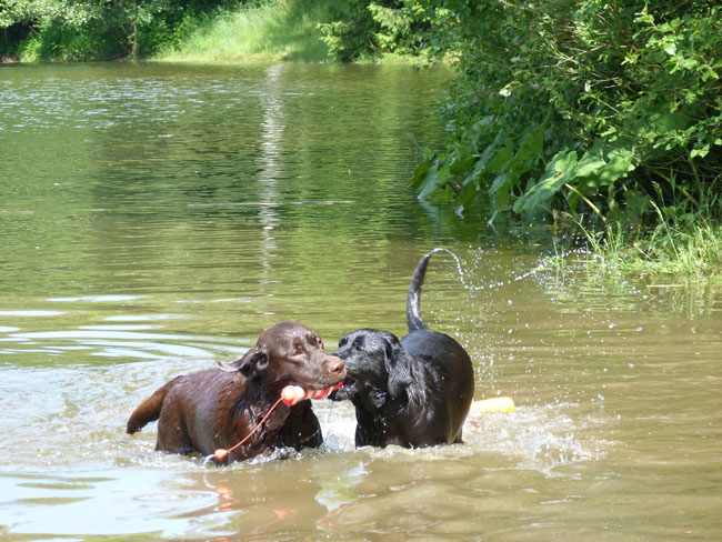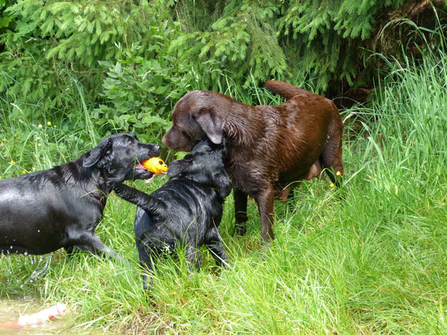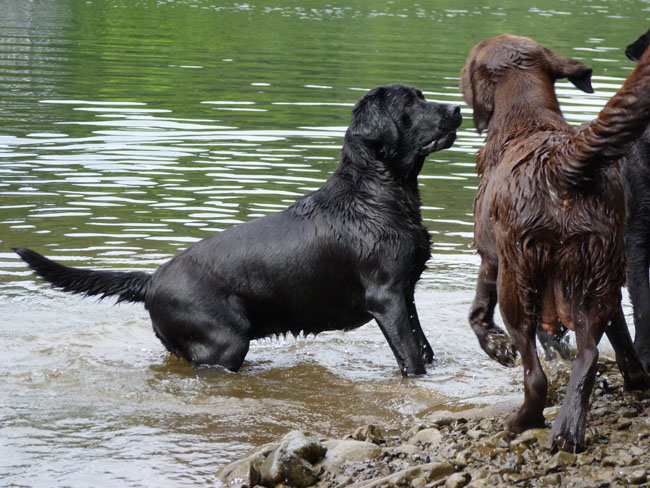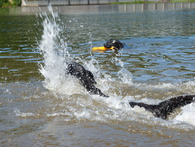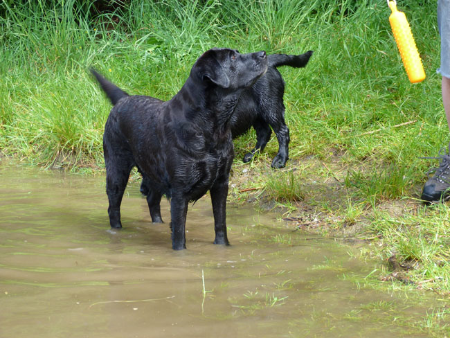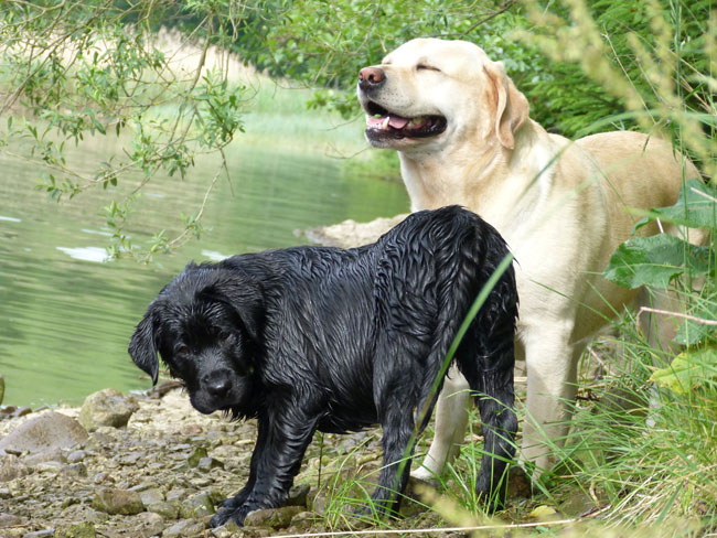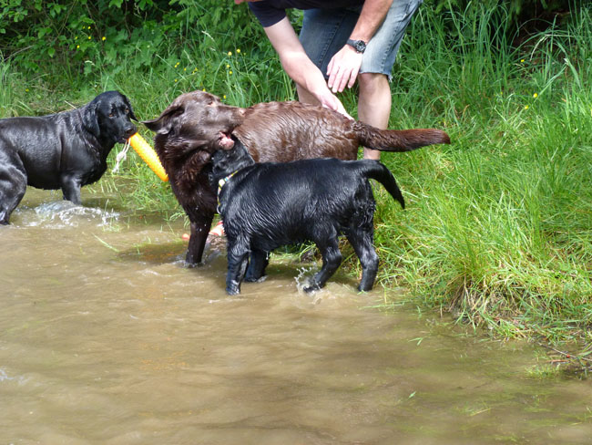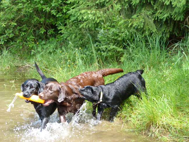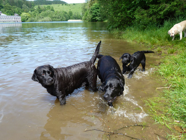 Was gibt es für den Labbi schöneres als Wasser??? Okay, das Fressen steht an gleicher Stelle . Im Moment verbringen wir ja die meiste Zeit des Tages mit unserem I-Wurf, aber abends geht es bei den heißen Temperaturen mit unseren Mädels zum Schwimmen und toben. Die Auszeit genießen alle sehr! Ich habe mal ein paar Impressionen zusammengestellt von unseren Mädels