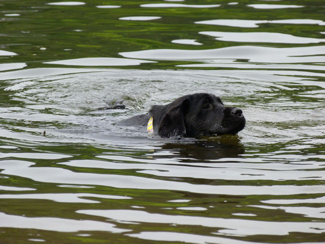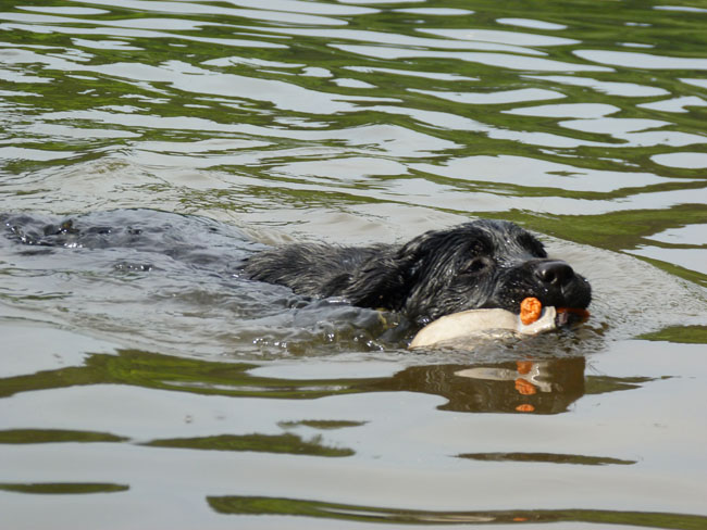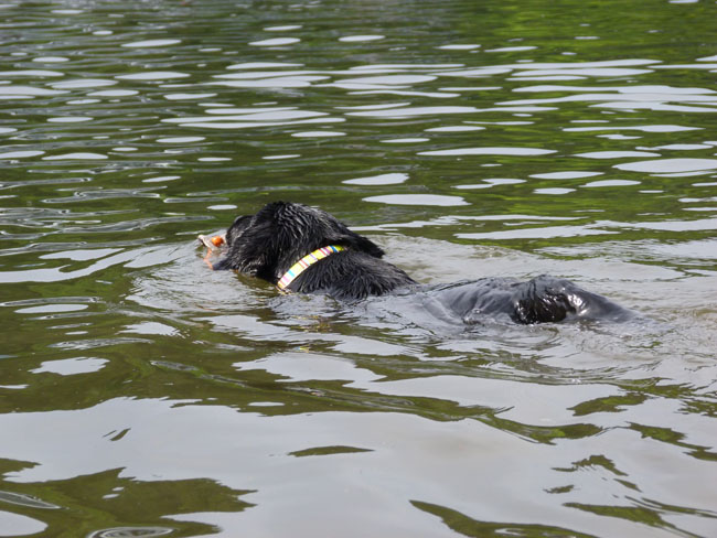 Molly schwimmt ganz ruhig und sicher zum Apportel