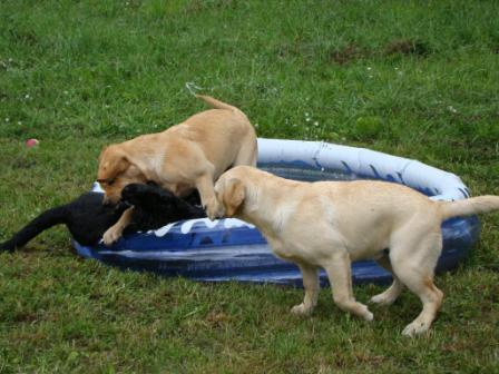 Wir hatten einen tollen Nachmittag mit unseren Labbis. Aus den kleinen Engel sind wilde Kerle geworden und ich war glücklich "meine Babies" wiederzusehen und bin begeistert, wie toll sie sich entwickelt haben. Ein riesen Lob geht an die Welpeneltern, ihr habt die Süßen schon sehr gut erzogen und eine tolle Bindung aufgebaut. Macht weiter so, ihr seid auf dem richtigen Weg.