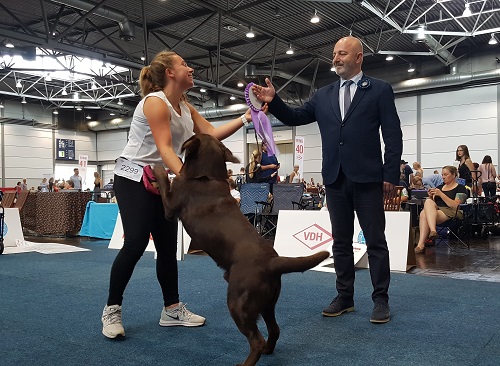 Am Samstag war die internationale Ausstellung mit der Richterin Inga Sül (EST). "Cash" gewann seine Klasse mit einem vorzüglich, Anw. Dt. Jg. Ch. und bekam den Titel Jugendsieger Leipzig 2019.