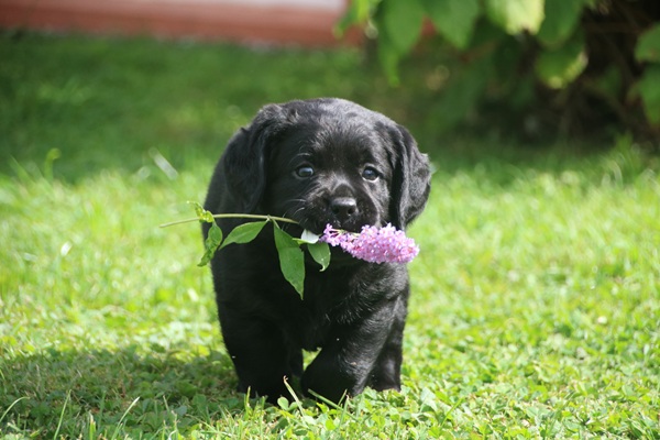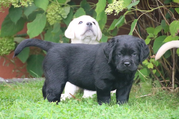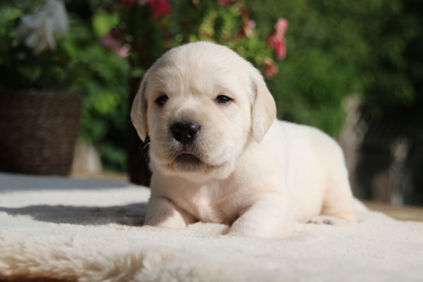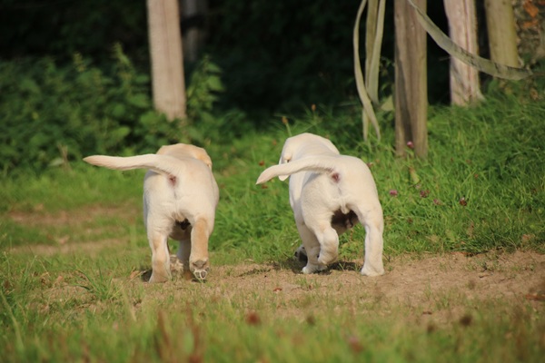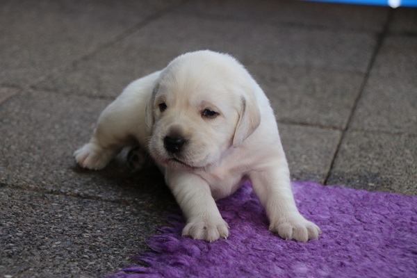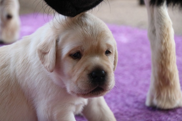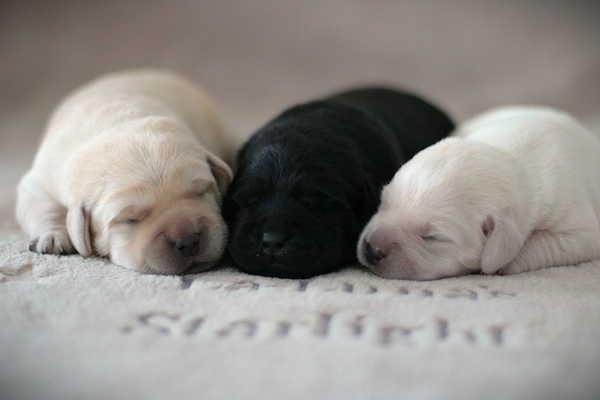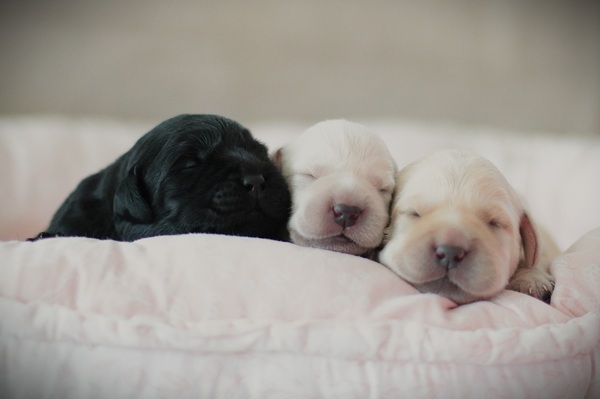 Gestern haben wir die ersten Fotos mit der Kamera gemacht. Unsere beiden gelben Rüden bekommen so langsam schwarzes Pigment und auch so werden alle drei jeden Tag niedlicher.