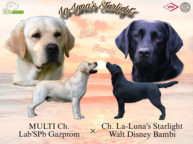 Am 14. Juli 2025 schenkte uns Bambi in einer unkomplizierten Geburt drei kleine Wunder. Wir freuen uns über zwei gelbe Rüden und eine schwarze Hündin.